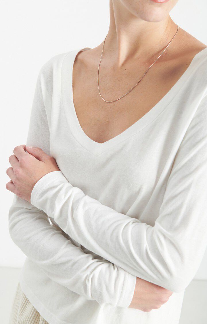 The long-sleeved women's T-shirt from the iconic Gamipy line stands out for its peach skin feel fabric. A true feminine icon with its fitted cut, it returns this season in new colours.