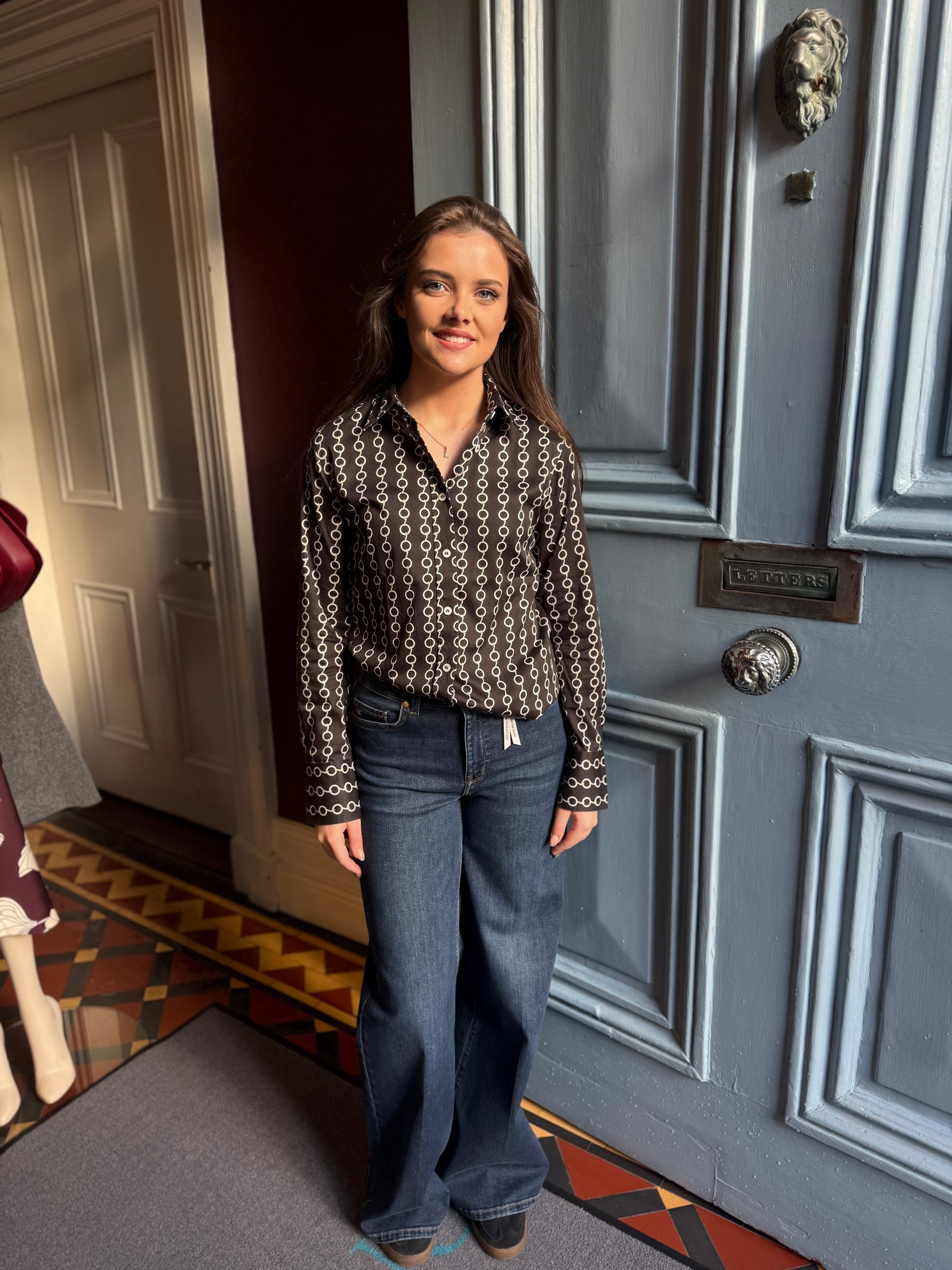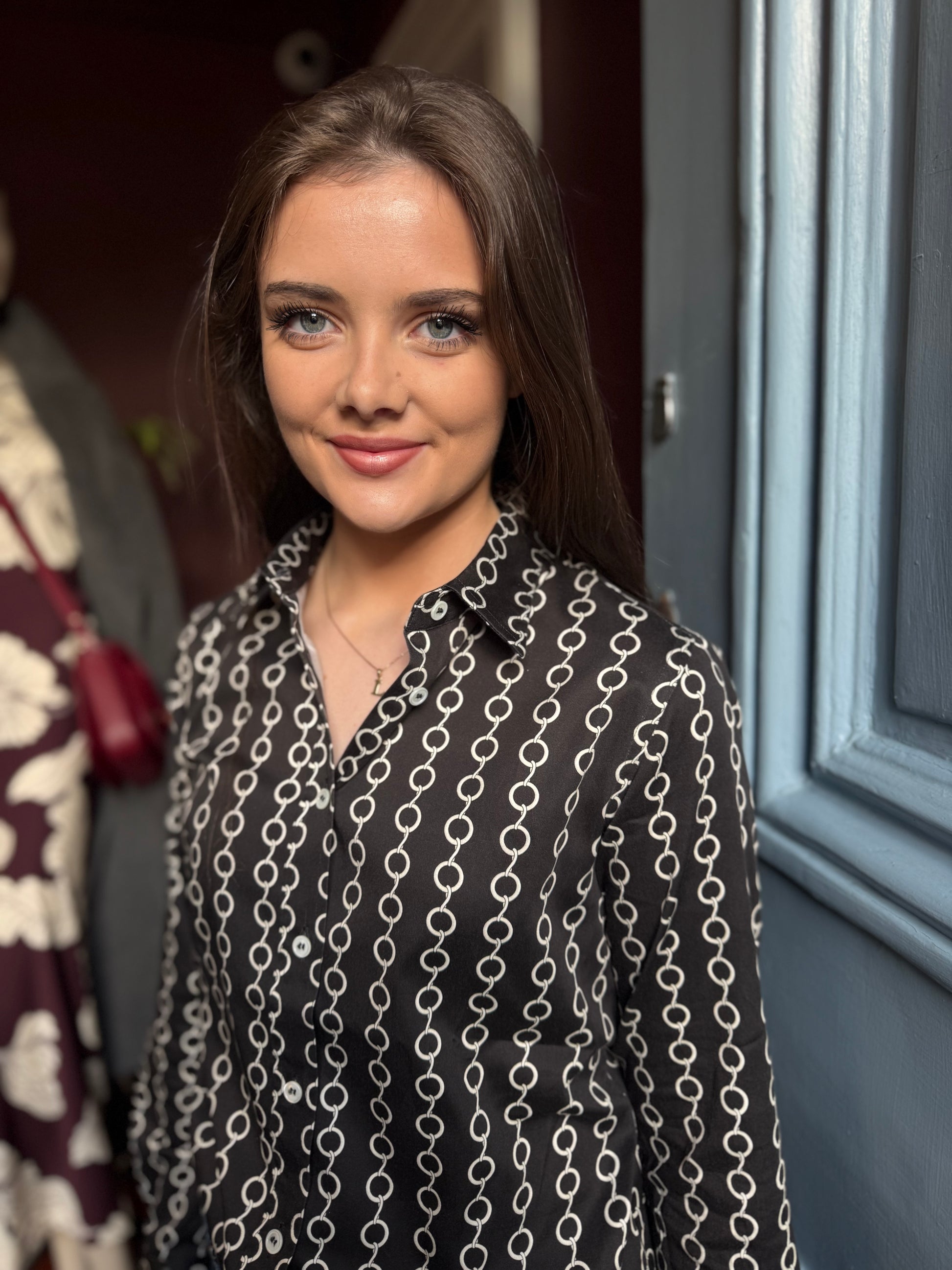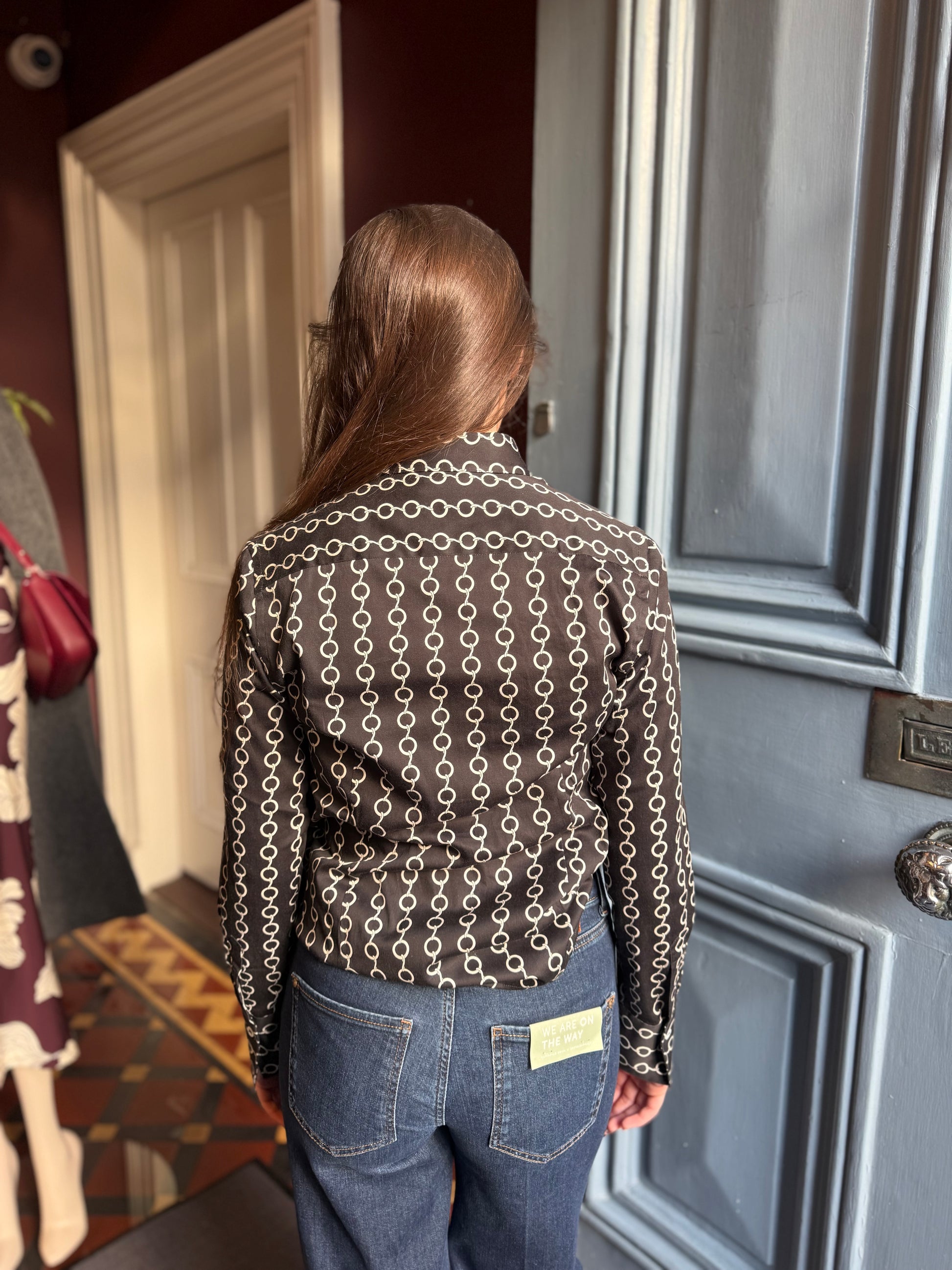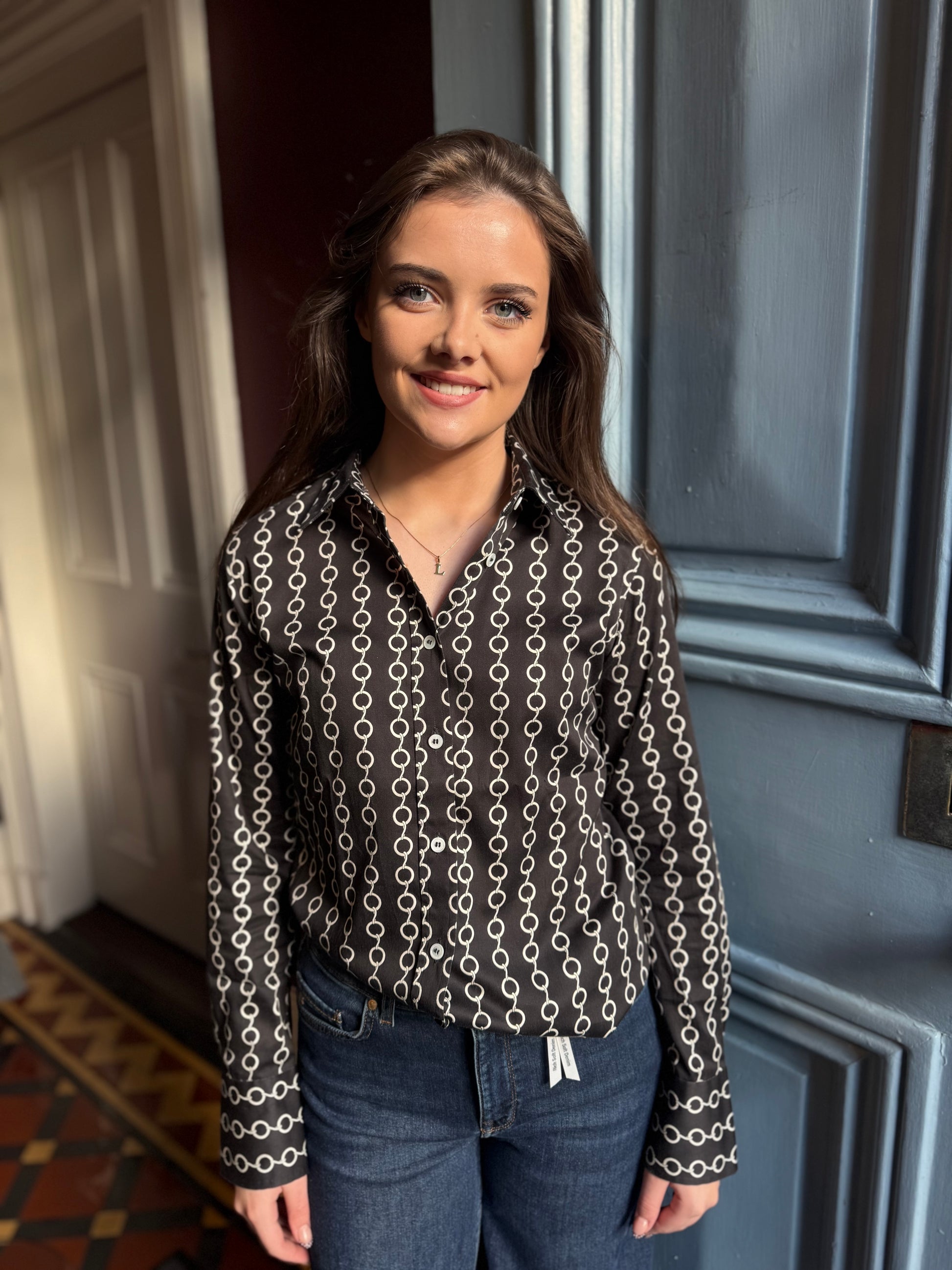 Black Chain print fitted cotton shirt with elastin.