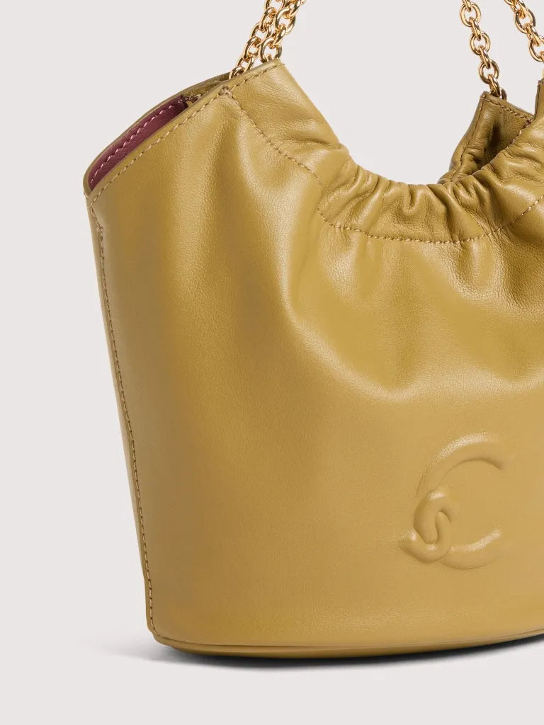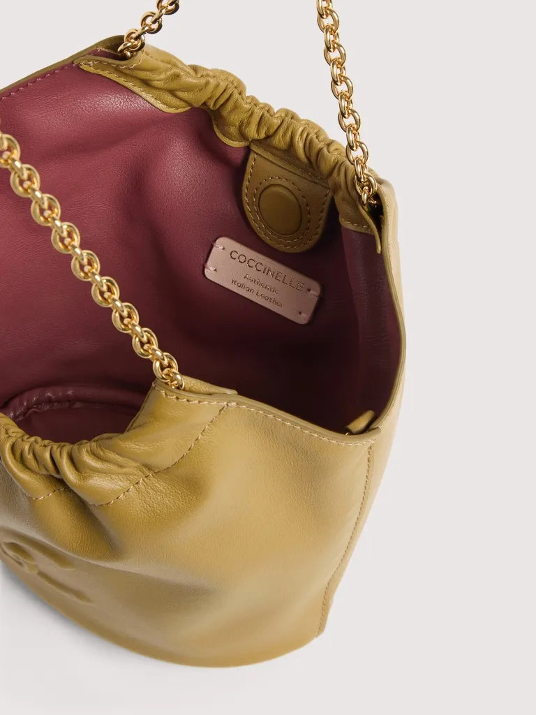 The Coccinelle Smash line embodies the brand’s full contemporary, feminine attitude. The lightweight smooth leather is gathered by the metal chain, creating soft folds that give the line a supple look. The C-Me logo enhances and adds a personal touch to this romantic, spacious bag. This model is made with smooth leather, tanned with special oils that make it soft to the touch. Despite its silky appearance, the leather is weather-resistant thanks to the use of resins that make the leather slightly waterproof while maintaining its natural appearance.