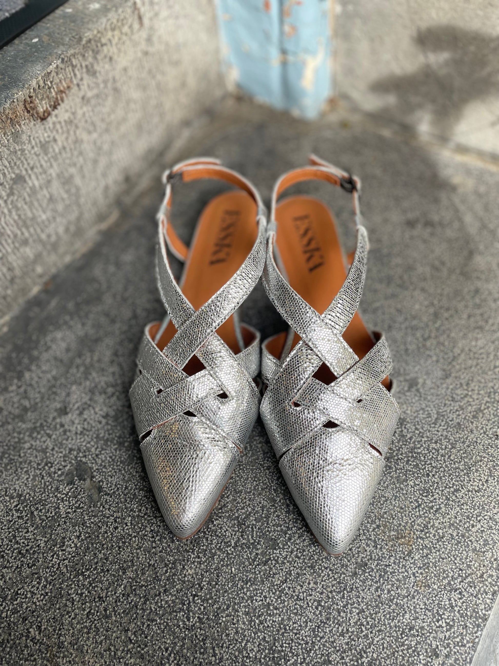 Step out in style with the Heidi silver slingbacks. Featuring a chic pointed toe and multiple straps for a playful yet elegant vibe, these silver shoes bring fun to your wardrobe without sacrificing comfort. Perfect for adding a bold touch to any outfit while keeping your feet happy all day long.