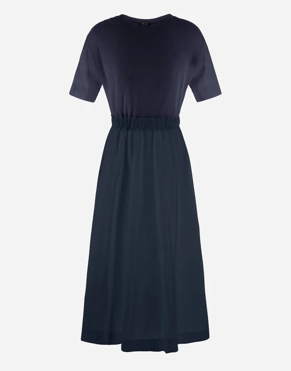 Herno Jersey & Wool Knit Roll Neck Navy Dress
