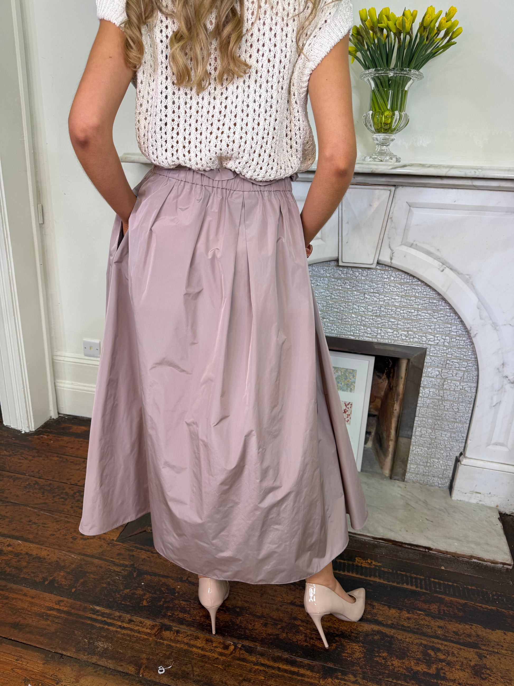 Herno Dusty Pink Techno Taffeta Skirt with Elasticated Waist