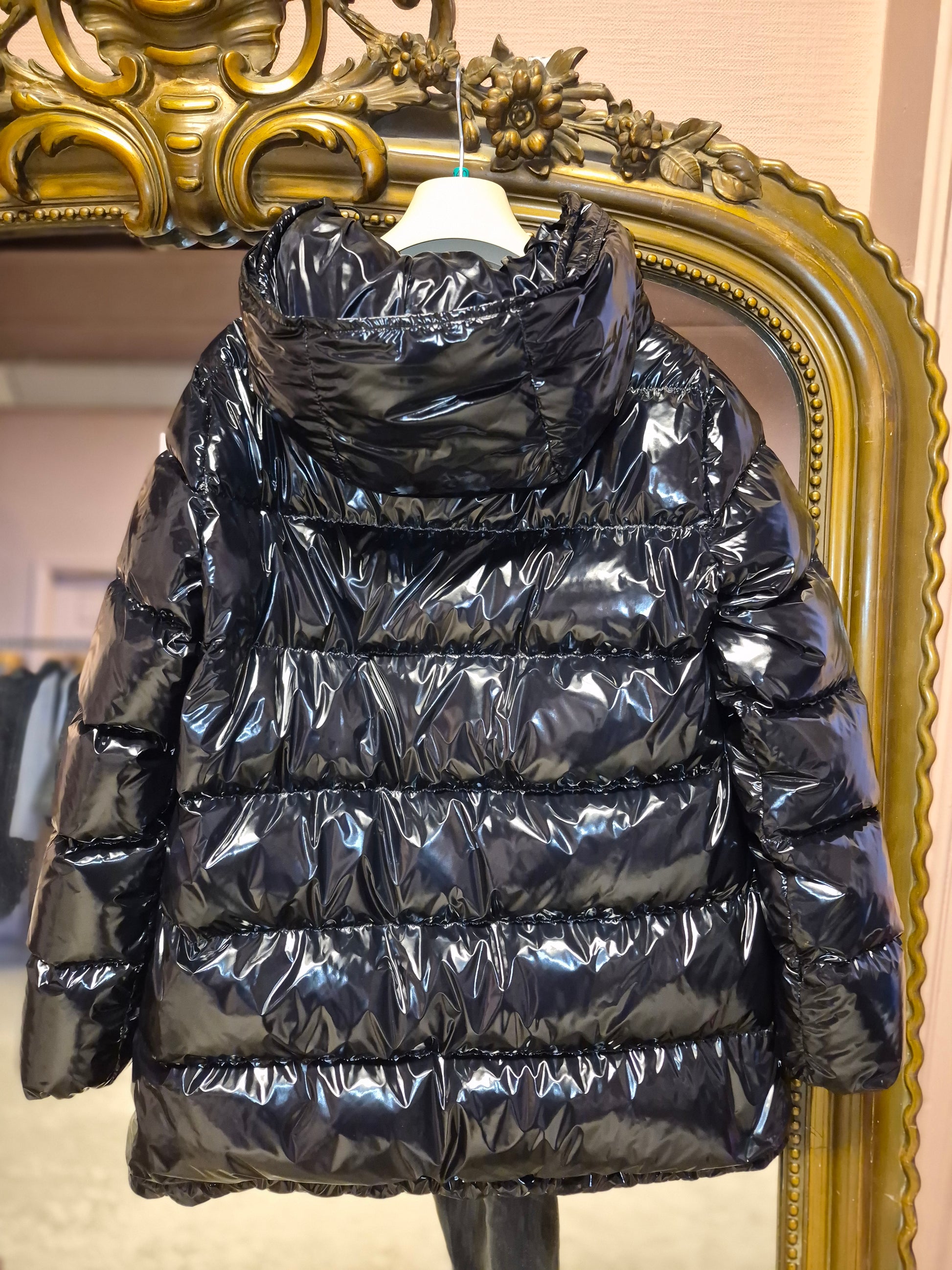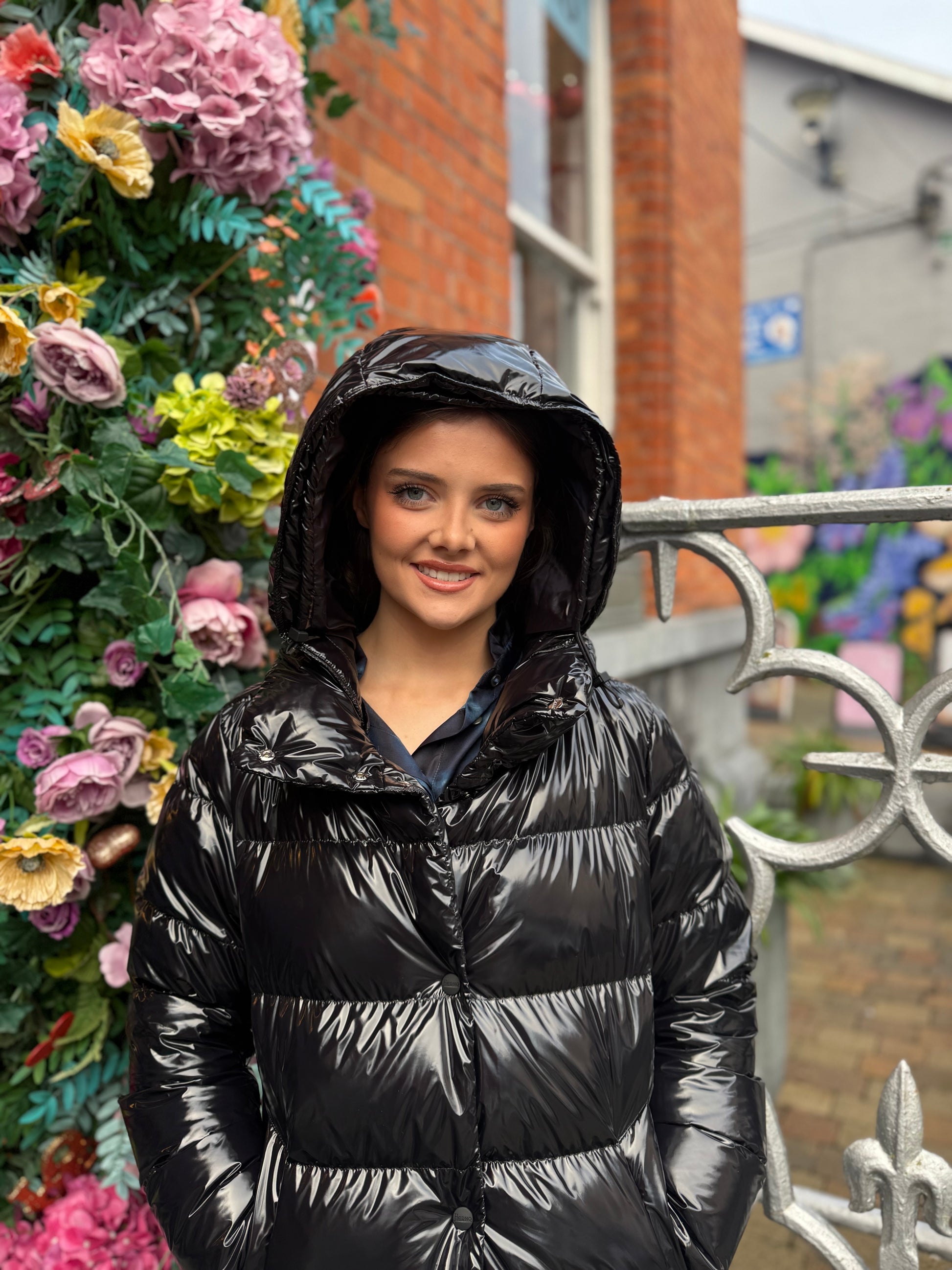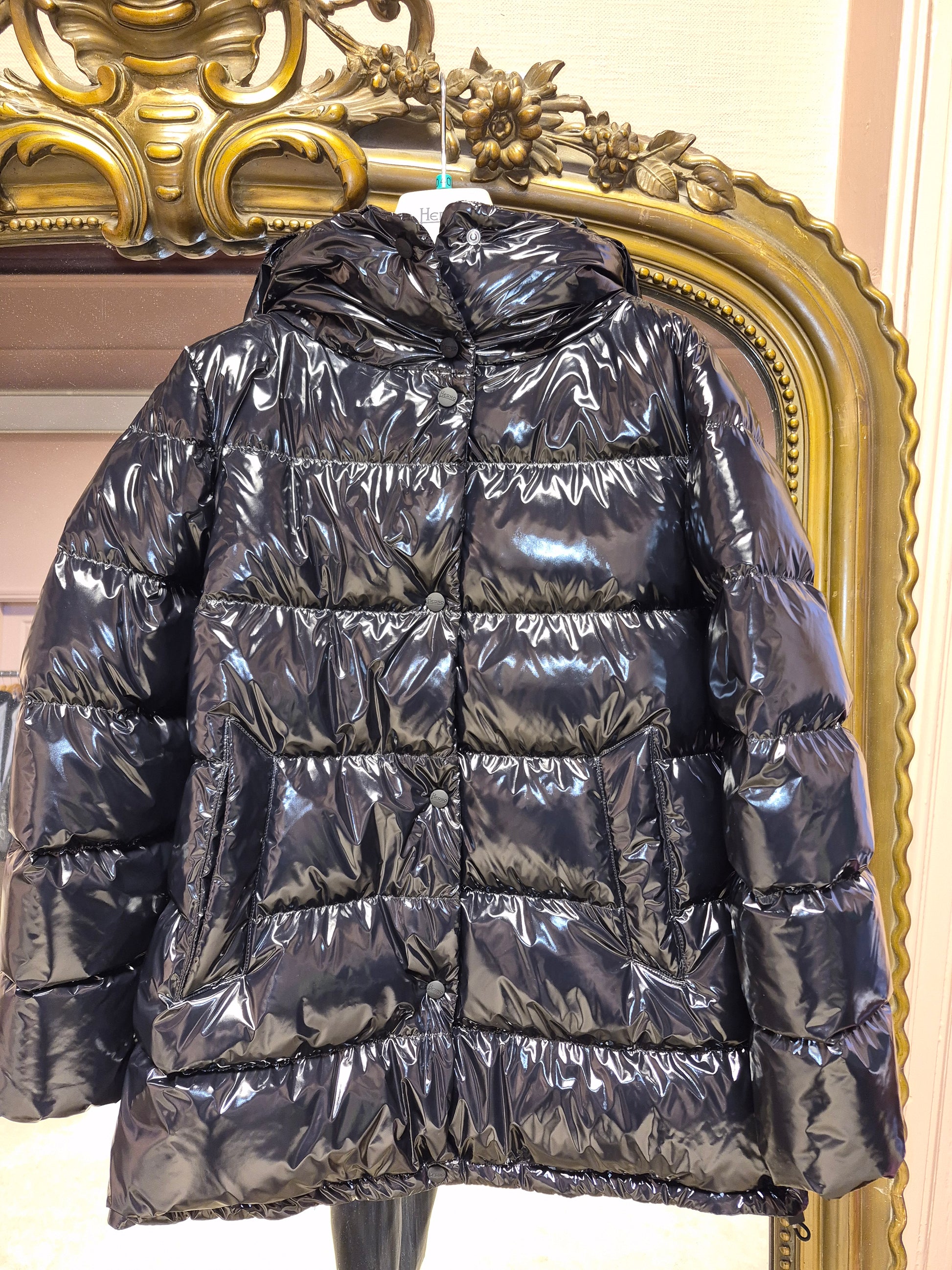 Herno Black Glossy Medium Length Puffa With Hood