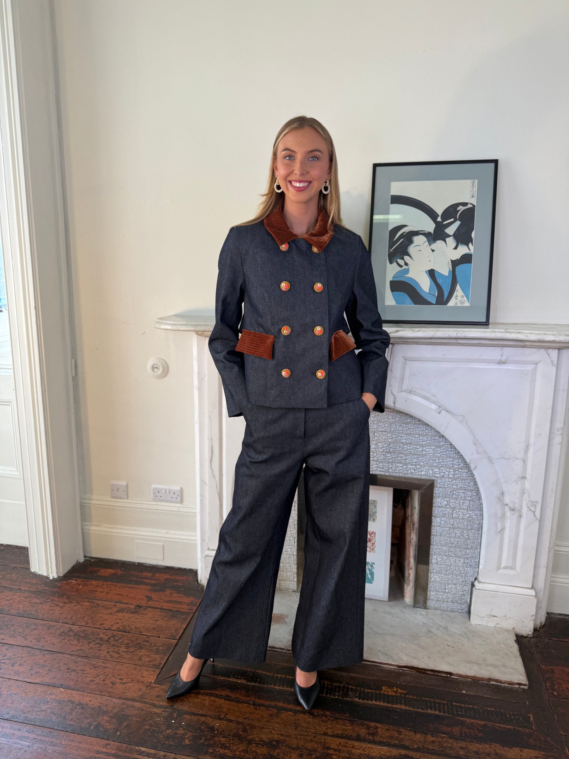 These high-waisted jeans, designed to pair with the Claudi Jean jacket, combine elegance and modernity for a coordinated and refined look.