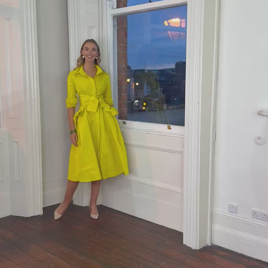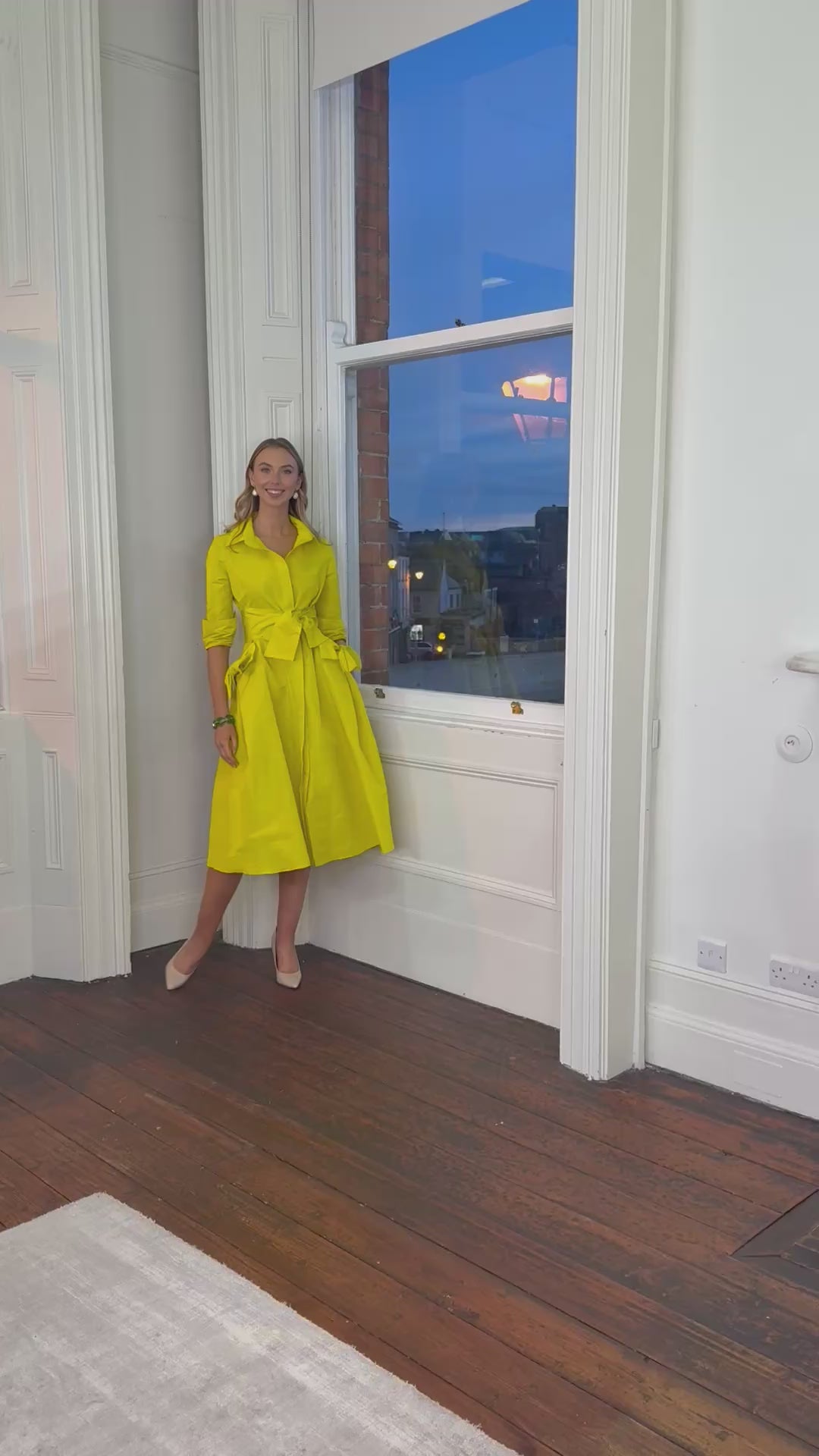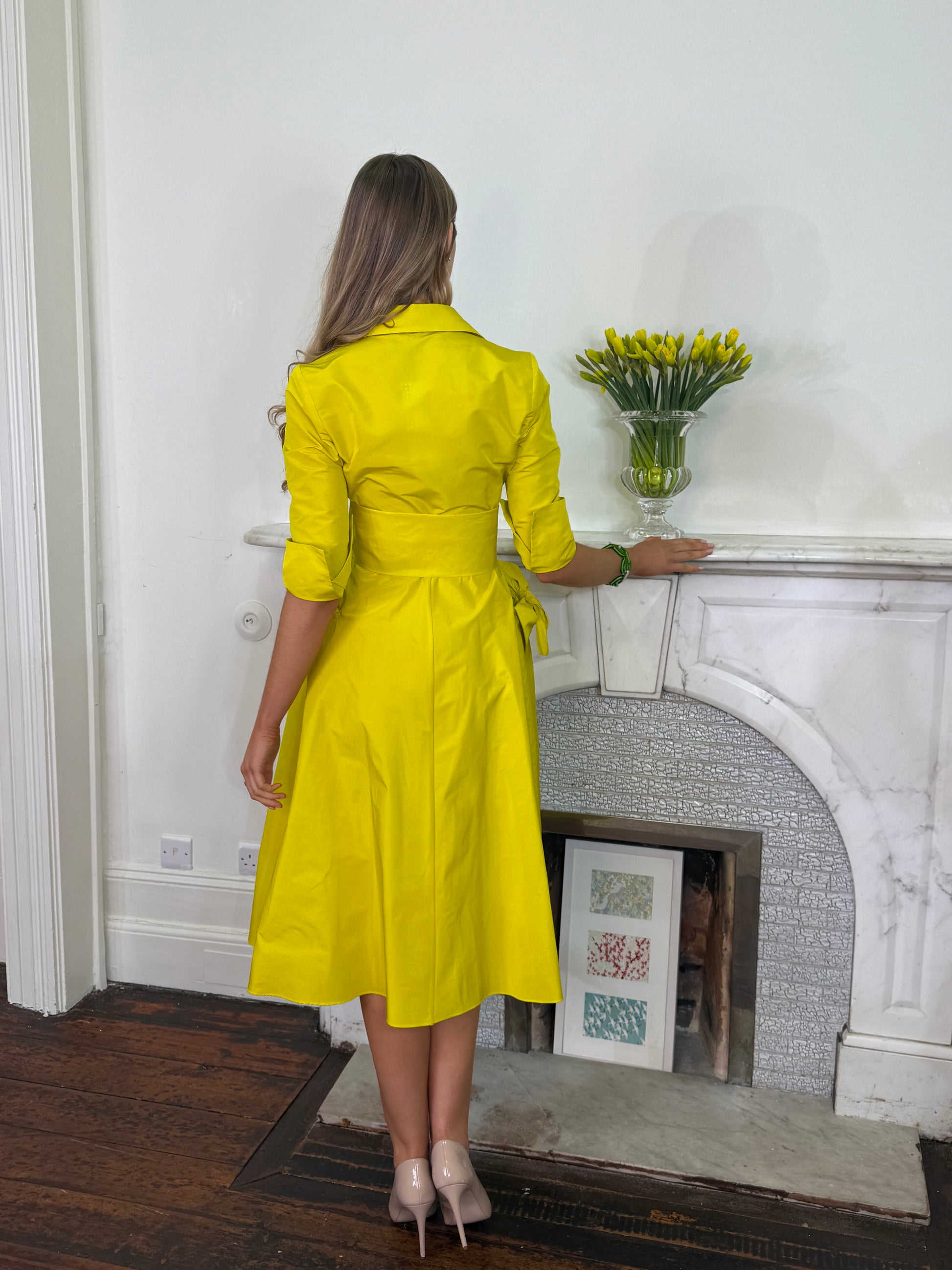 Moskada Yellow Taffeta Shirt Dress with Belt and Pocket Detail
