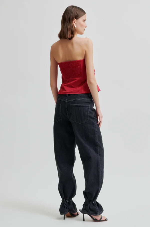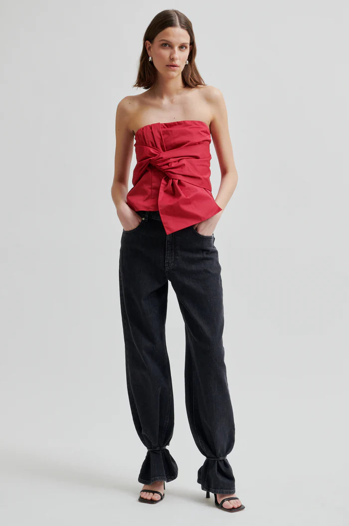 Second Female strapless bow top. The top is made in a soft, smooth cotton blend. Featuring A side zip fastening and elasticated section at the back. Large bow detail at the front. Non-slip silicone lining inside bust. Slim fit.