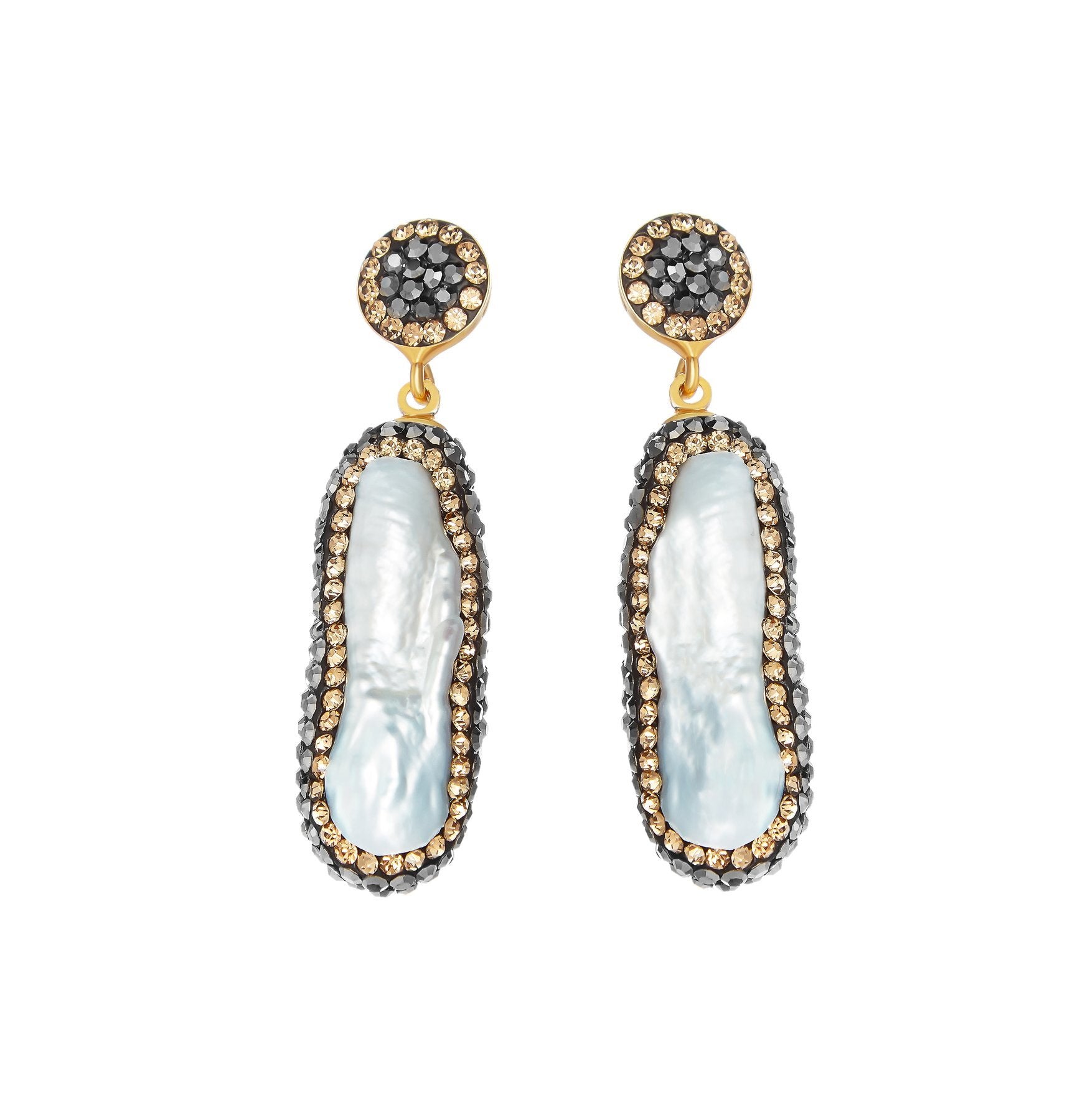 Hand crafted with iridescent baroque pearls edged with multi faceted Swarovski crystals.