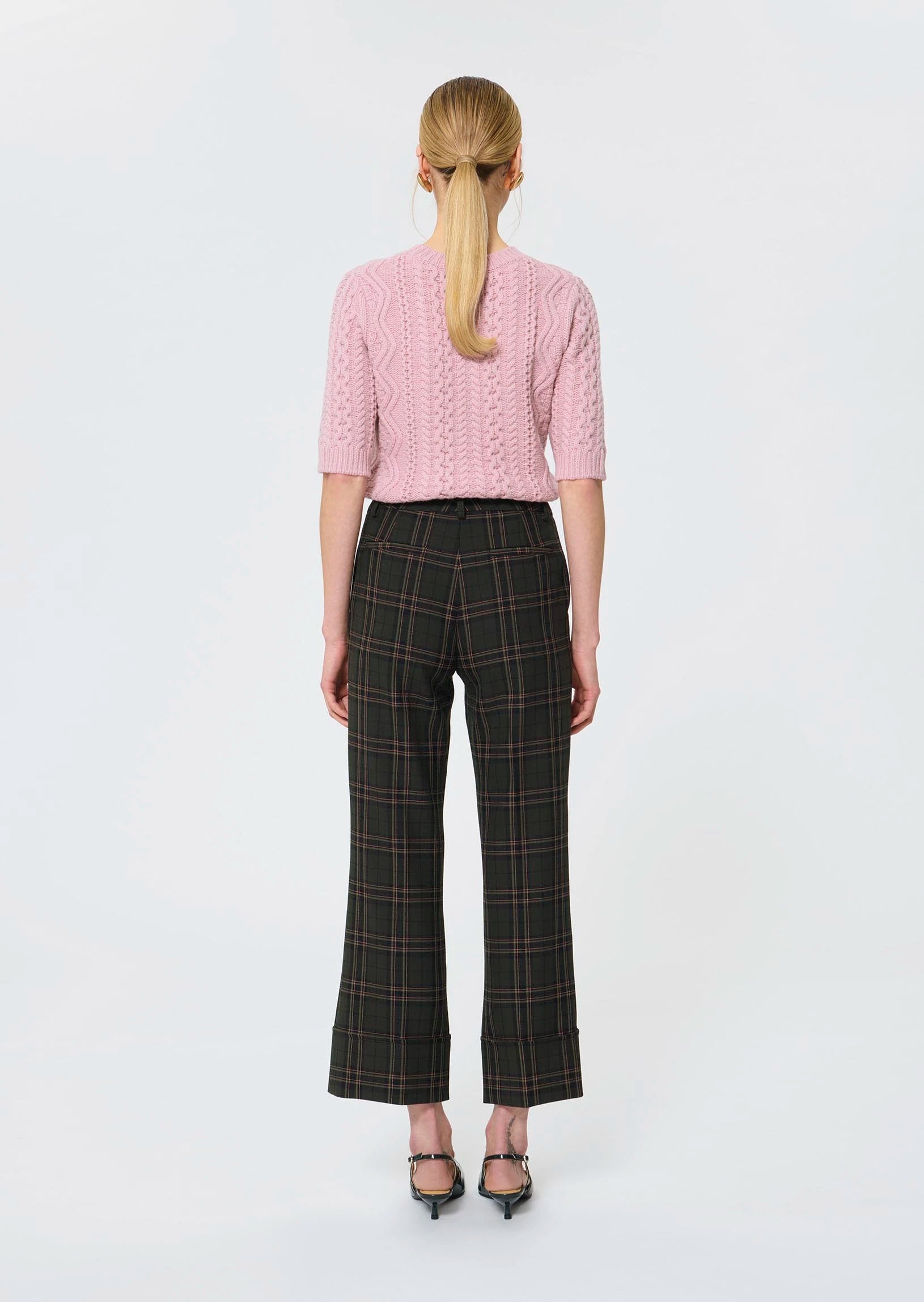 Pierre, our English green trousers. The check print revisited in softness. These English green Pierre trousers are part of the Meet Mary wardrobe. They pair perfectly with the Mahe coat and the Pongo sweater.
